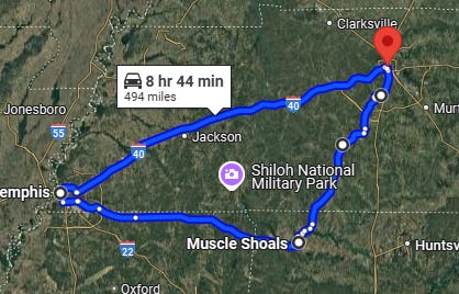 There’s a sort of triangle stretching from Nashville, TN to Memphis on one side and to Muscle Shoals, Alabama on the other.